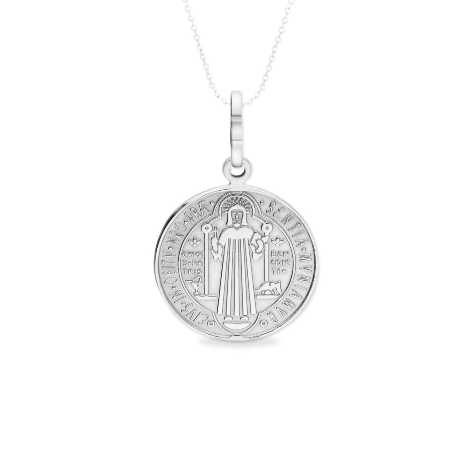 Złoty medalik z wizerunkiem św. Benedykta ma głębokie znaczenie duchowe i symboliczne, dlatego idealnie sprawdzi się jako prezent dla bliskiej osoby. Święty Benedykt przedstawiony na jednej ze stron medalika to patron Europy, który jest znany z wielkiej mądrości oraz niezwykłej siły duchowej. Po drugiej stronie umieszone są symboliczne napisy i krzyż, które mają chronić przed niebezpieczeństwami, negatywnymi wpływami oraz złymi mocami. Ta złota zawieszka to wyjątkowy znak nie tylko osobistej wiary, ale także potężny talizman, który przynosi pokój, siłę oraz ochronę osobie, która go nosi. Medalik został wykonany z najwyższej jakości białego złota próby 585.